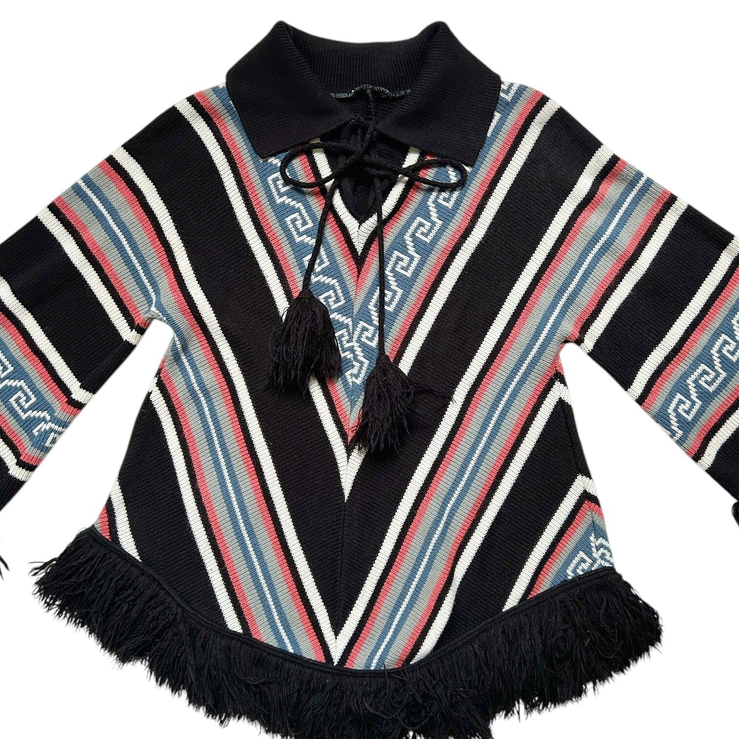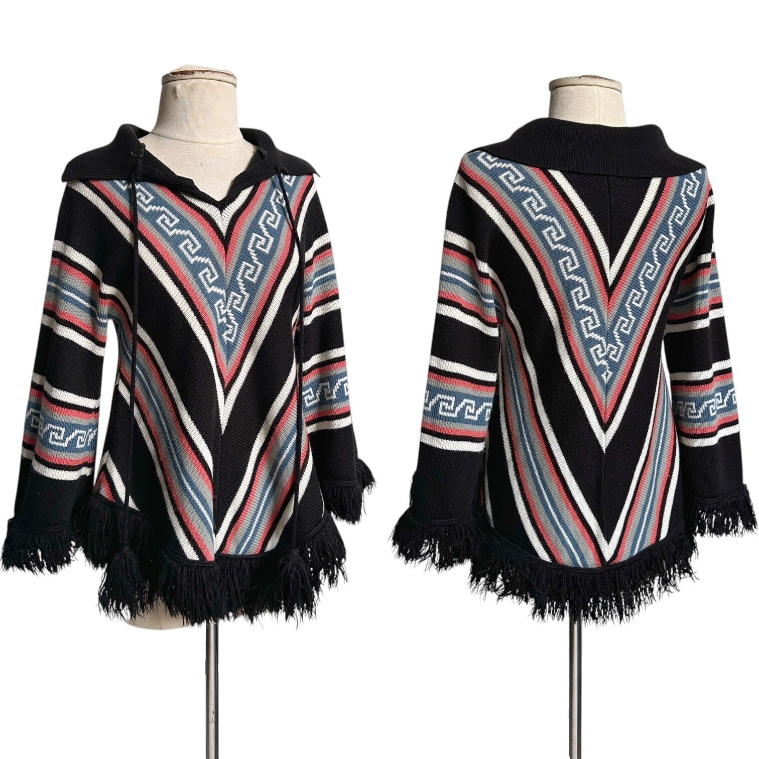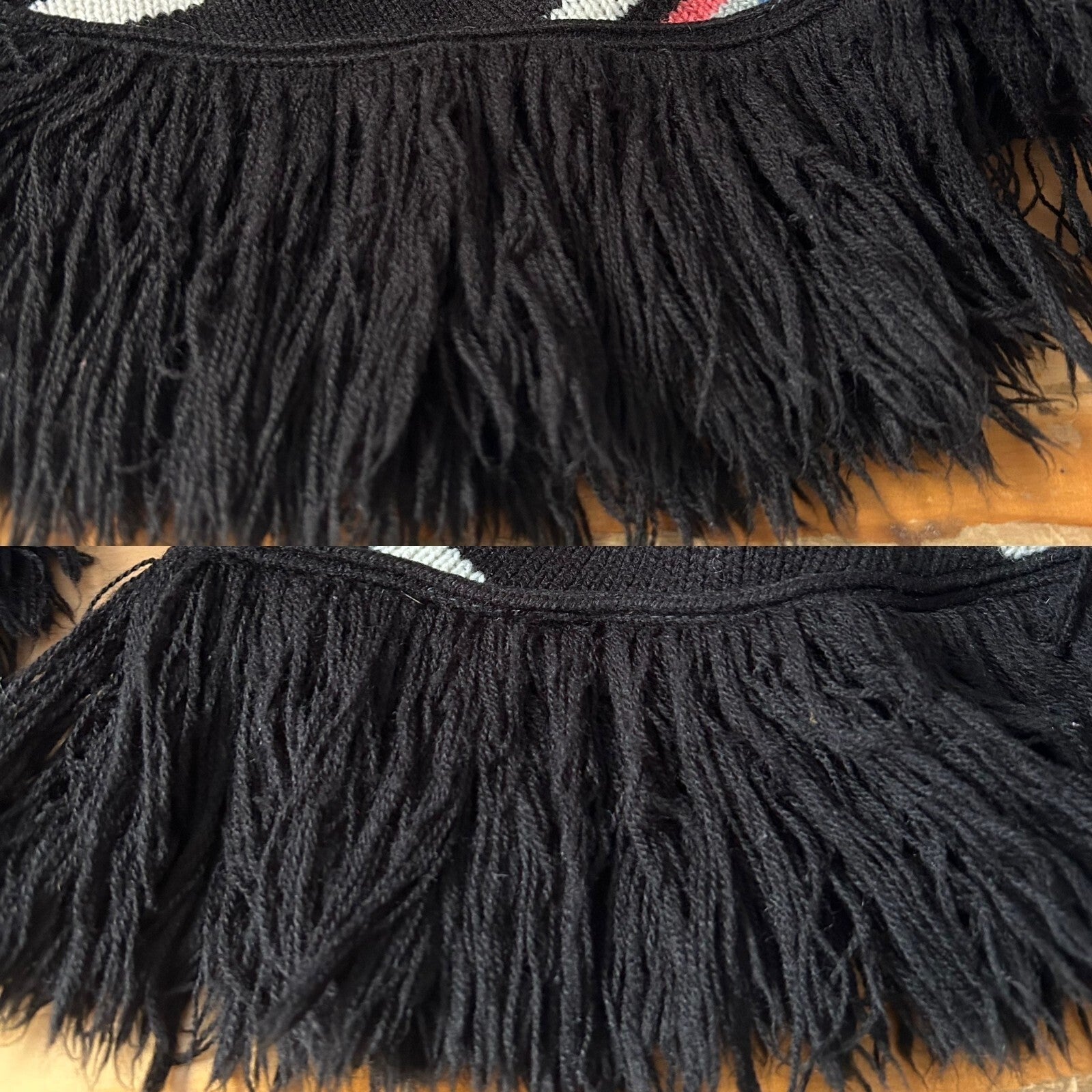 Great vintage condition, some wear/tangling/"frizz" to fringe, a couple loose threads in knit pattern