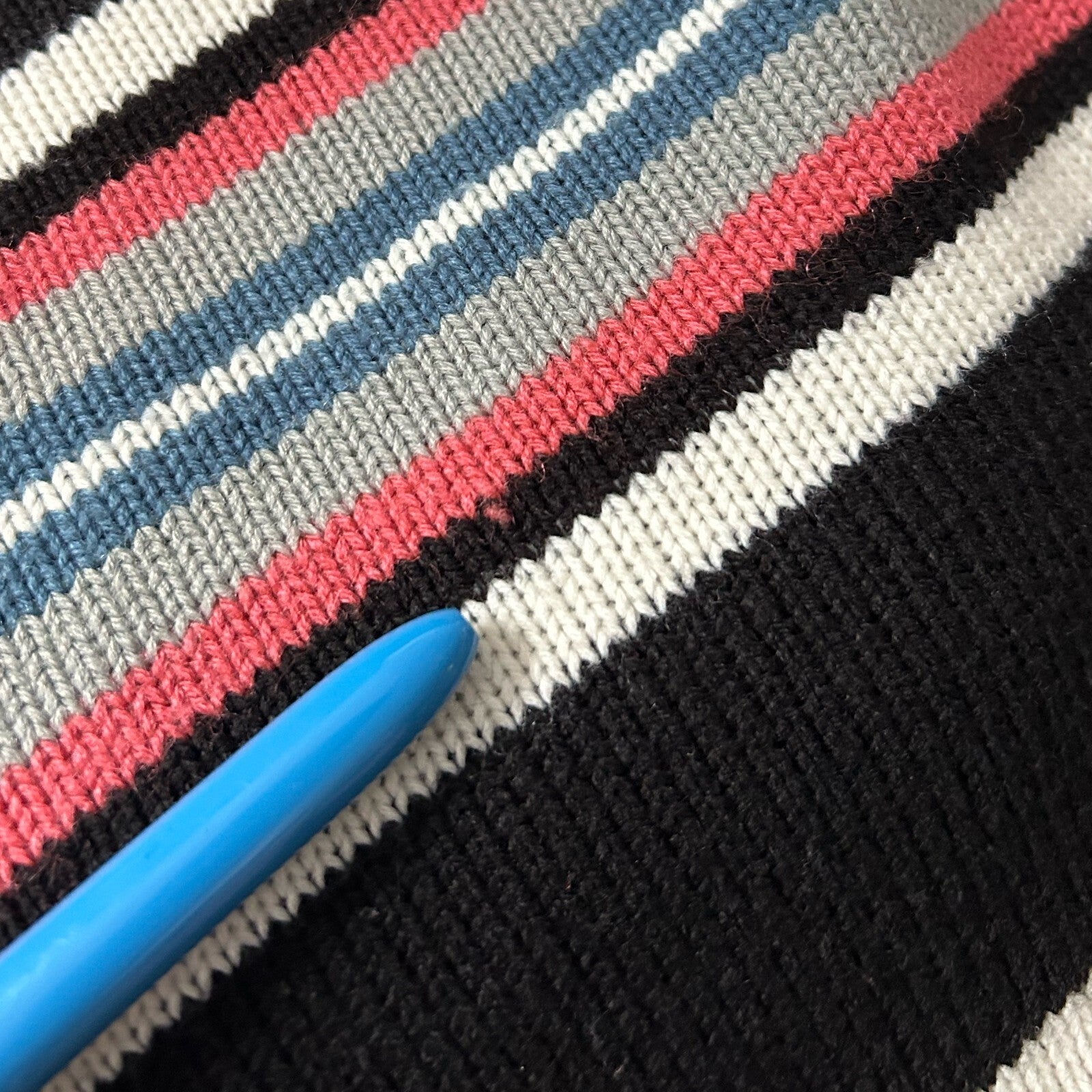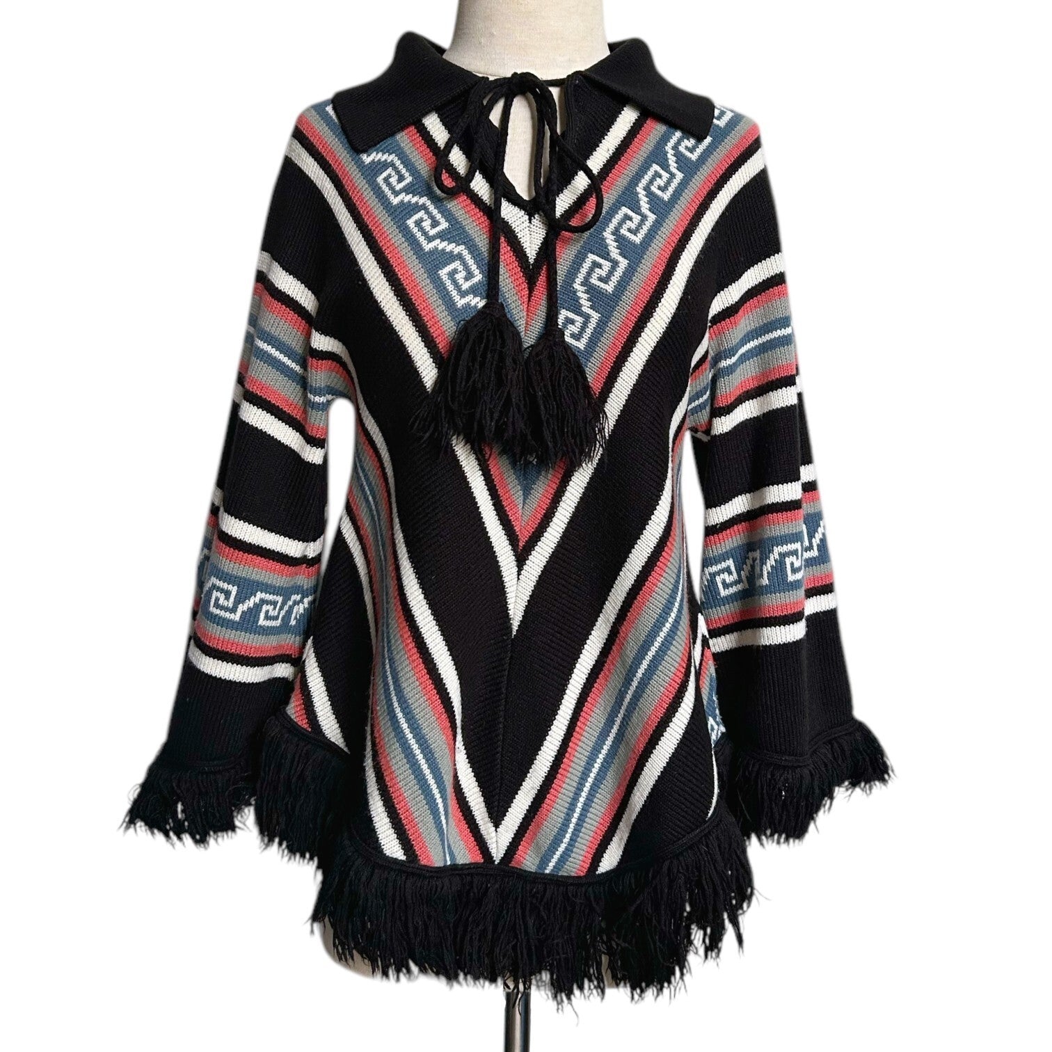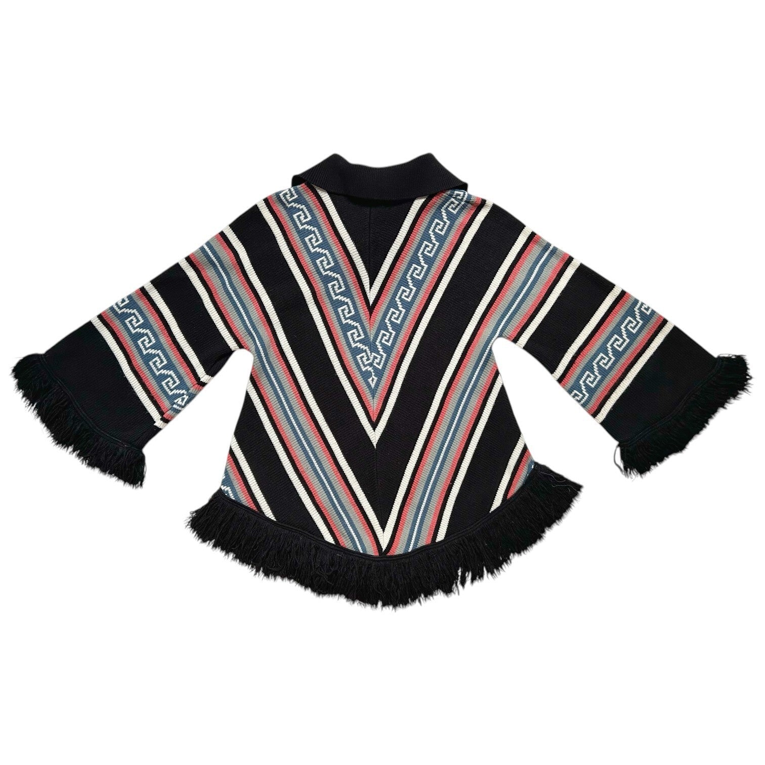Great vintage condition, some wear/tangling/"frizz" to fringe, a couple loose threads in knit pattern