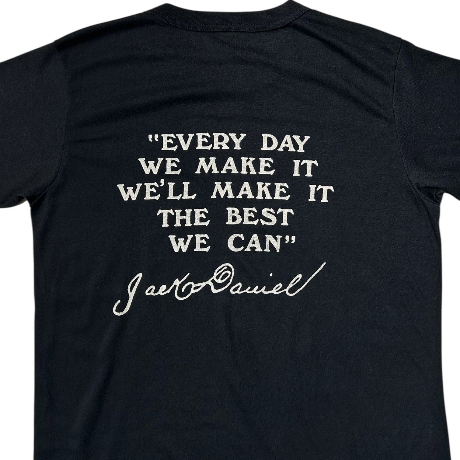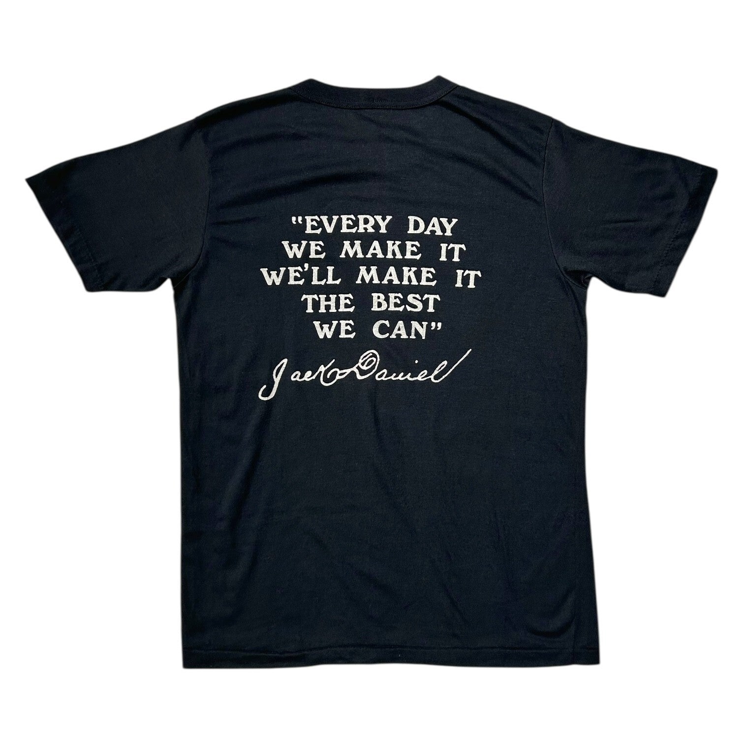 Jack Daniels logo graphic on front, quote on back: “every day we make it we’ll make it the best we can”