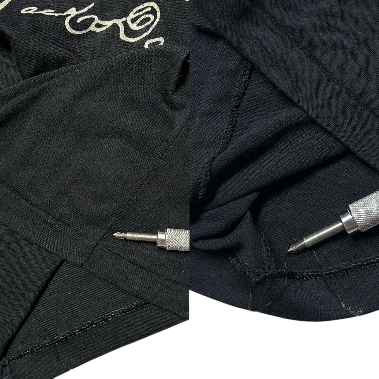 Black polyester/cotton material with white graphic